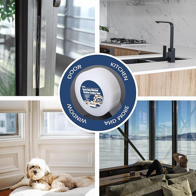 - Airtight Weather Stripping Tape - Offer an airtight and watertight solution for windows. Its strong pressure-sensitive adhesive provides a reliable seal against air and water infiltration, perfect for sealing drafty windows and window-type air conditioning unit gaps. This window weather stripping tape is effective against cold drafts and particulate matters from permeating your room.