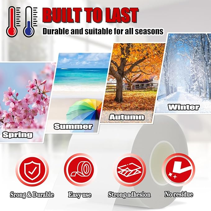 - High Quality Material:Made of durable, weather-resistant Nano tape, this tape creates an airtight seal to block drafts, dust, and moisture while remaining flexible in cold temperatures.keeps your home warm/cool and quiet in winter/summer.