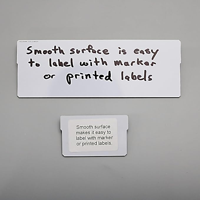 - Easy To Label - These dividers are coated with a smooth white finish that makes it easy to install stick on labels or write directly on them with a marker. Both can be easily removed or changed.